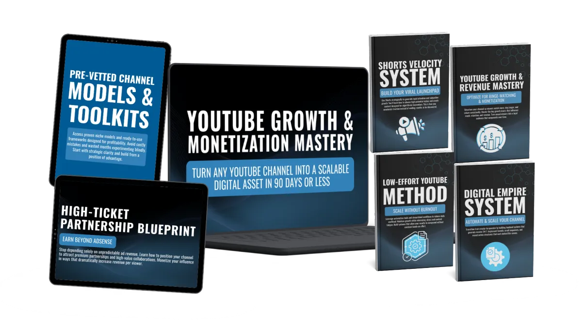 Use the YouTube Growth & Monetization Mastery system to launch viral-ready channels, activate multiple high-margin income streams, and scale your channel into a long-term automated business - without burnout, guesswork, or depending on other paid software